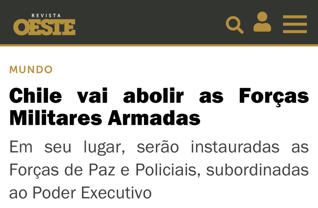 Uma pista interessante para o futuro das Forças Armadas sob o petismo é a pretensão do presidente socialista do Chile, o radical Gabriel Boric, que pretende acabar com as forças armadas daquele país e substituí-la por uma guarda nacional. A receitinha vinda de Pequim deve ser aplicada em toda a América do Sul.